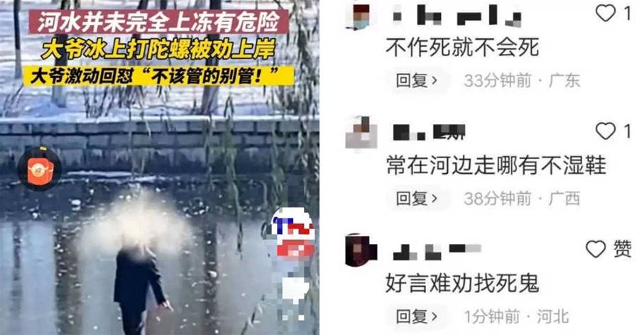 有網友說,好言難勸找死鬼。很多事故本可以避免,奈何有人就是不聽,總是認為自己命大,卻不知這麼冷的天,真要掉下去,不出幾分鐘就是涼涼了,可能都不給別人施救的機會。